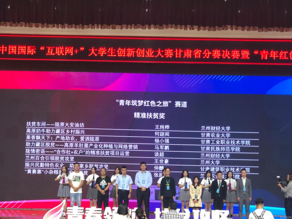 在9月8日结束的第六届中国国际“互联网+”大学生创新创业甘肃赛区比赛中,由经管学院翟伟彤、苏光等教师指导,2016级市场营销专业白文辉同学团队的“果香飘天下——产地助农 爱洒陇原”项目荣获“青年红色筑梦之旅”赛道金奖和精准扶贫奖;由两位教师同时指导、2019级市场营销专业杨佳佳同学团队的“圆梦舞蹈——让梦想起飞”项目荣获职教赛道铜奖。