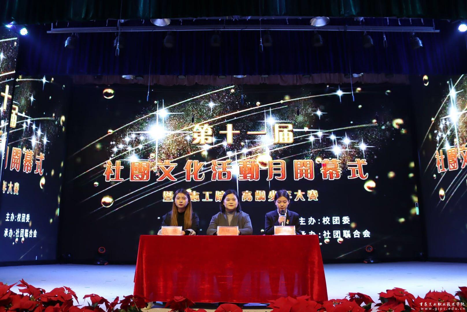 11月8日,由校团委指导、社团联合会主办,各学生社团承办的“第十一届社团文化月”启动仪式暨“励志工院,高调少年”歌手大赛在大学生活动中心举行。校团委负责人黄晓慧出席启动仪式,社团联合会主席、校学生会主席和社团指导教师及社团学生代表、各二级学院学生代表参加本次活动。