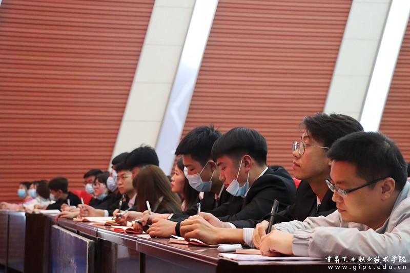 最后,王军老师要求大家要树立“七个自信”,即:道路自信、理论自信、制度自信、文化自信、专业自信、职业自信、事业自信。努力实现从“技能人才”到“能工巧匠”再到“大国工匠”的成长与飞跃,争做担当民族复兴大任的时代新人。