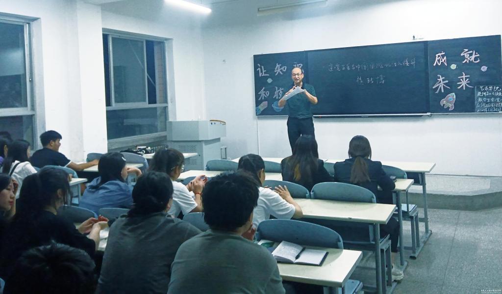 走访结束后,新博来到艺术学院装饰2031班讲授了题为“建党百年与中国国际地位提升”的专题党课。