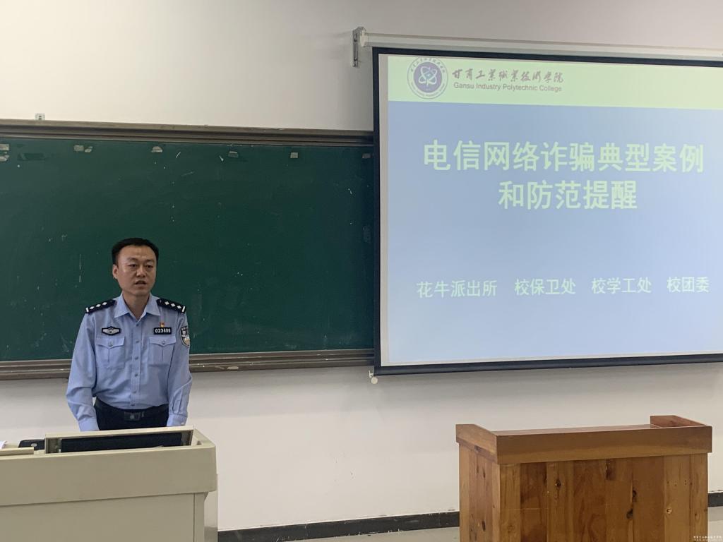 9月23日下午,保卫处邀请花牛派出所民警开展防范电信网络诈骗进校园活动,保卫处、学工处、校团委负责人及2021级近200余名学生参加活动,活动由保卫处处长张仲祥主持。