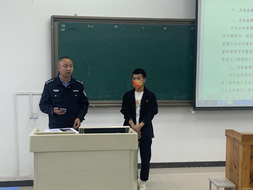 活动现场,花牛派出所副所长温警官结合高校易发的典型案例分析、常见形式和诈骗种类以及校园贷的特点、常见手法及危害,为同学们讲解了不法分子常用的诈骗手法和作案特点,提醒大家要理性消费。同时告诫同学们防范诈骗要做到“五不”(不理睬、不点击、不轻信、不泄露、不转账)、“三快”(被骗后急救快申诉、快报警、快取证)。张国华警官现场给同学们指导通过扫码关注“天水反诈 ”,安装“金钟罩APP”,达到“来电预警、短信预警、APP预警”预防上当受骗,守住自己的“钱袋子”目的,减少财产损失。