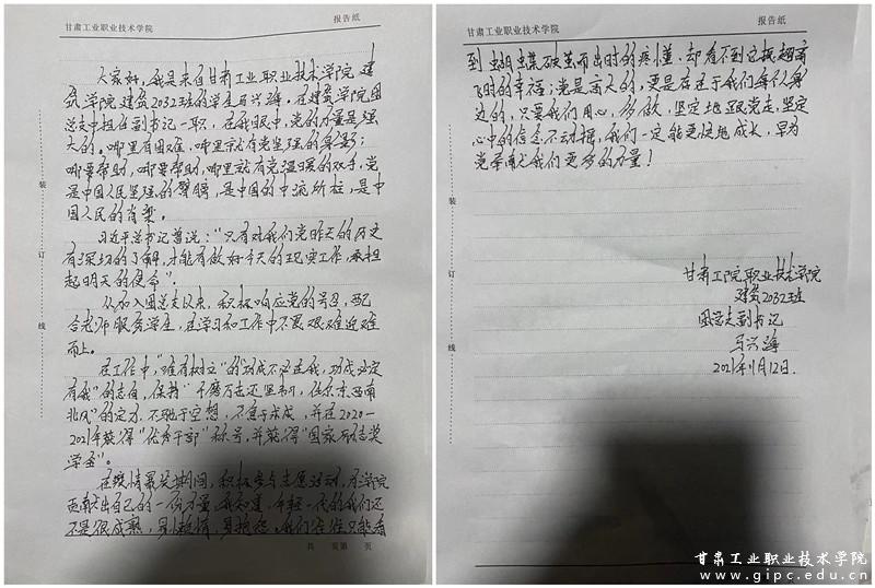 一百年来,一代代中国共产党人以蓬勃的朝气和昂扬的斗志奋勇争先,汇聚了攻坚克难、奋力前行的强大精神力量,提振起中华民族伟大复兴的“精气神”;一百年来,一代代中国青年以“青春之我,创建青春之国家”的抱负和志向,为国家富强、民族复兴凝聚起强大的青春能量。如今,青年一代要勇敢地接过艰苦奋斗的接力棒,用热血挥洒青春。作为学生干部,我们应从百年党史中感悟行动伟力,努力学习专业知识,为新时代建功立业;继往开来,不懈奋斗,以优异成绩迎接党的二十大召开。