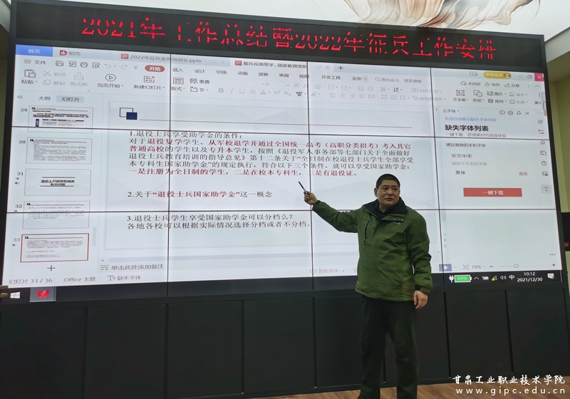 2021年12月30日上午,学校武装部组织召开2022年征兵工作部署会。会议由武装部副部长赵卫主持,各二级学院相关人员参加。