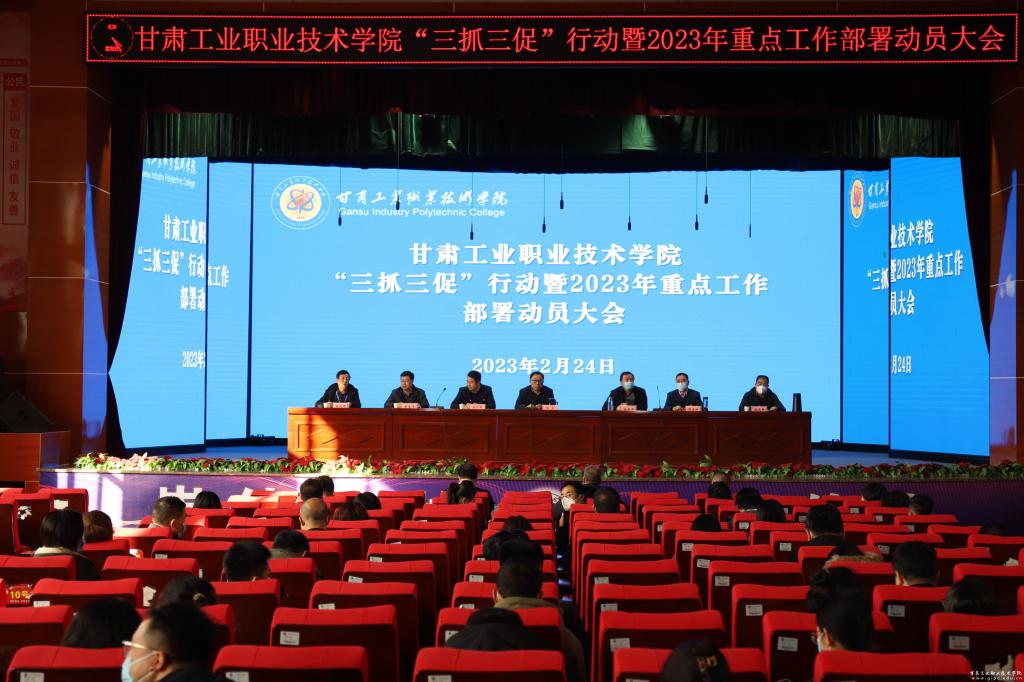 一年春为首,万事行为先。2月24日下午,学校在大学生活动中心召开“三抓三促”行动暨2023年重点工作动员部署大会,党委班子成员出席,党委书记杨声作动员讲话,党委副书记、院长安建平安排部署了2023年重点工作,全体教职工参加会议。会议由党委副书记刘乃君主持。会议指出,省委省政府决定在全省开展“抓学习促提升、抓执行促落实、抓效能促发展”行动,是深入贯彻落实党的二十大精神和习近平总书记对甘肃重要讲话和指示批示精...