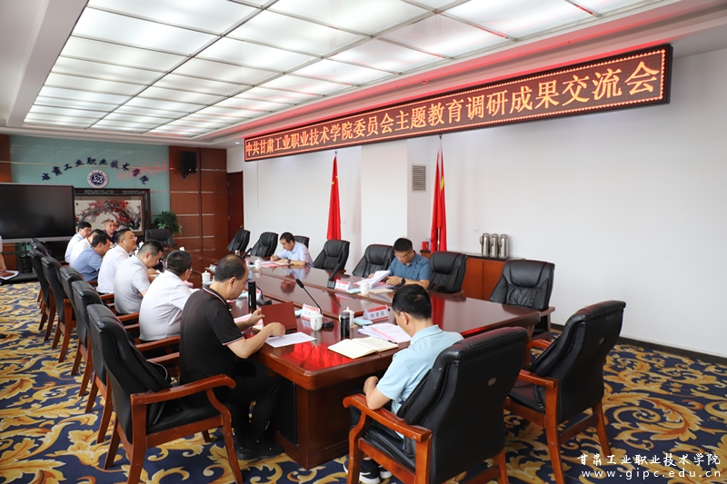 7月14日上午,甘肃工业职业技术学院召开学习贯彻习近平新时代中国特色社会主义思想主题教育调研成果交流会。省委主题教育第十二巡回指导组组长李韵东、指导组成员李坤到会指导。学校党委委员、主题教育领导小组办公室成员参加会议,会议由校党委书记坚葆林主持。会上,坚葆林以“服务产业,引领职教,全面提高人才自主培养质量——以测绘地理信息技术专业群建设为例”作解剖式调研成果汇报;学校领导班子成员结合实际,把自己摆...