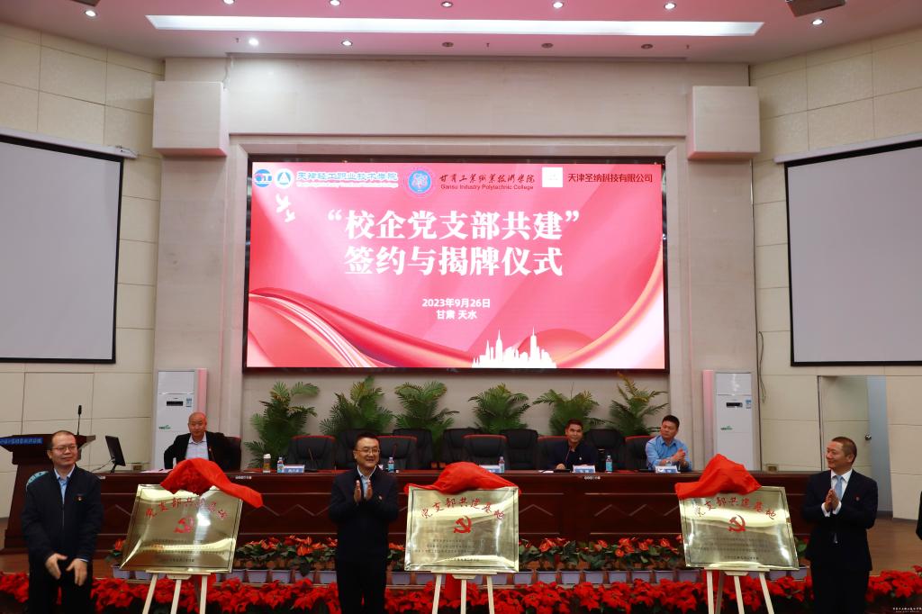 为进一步提高人才培养质量,加强跨区合作,经过天津轻工职业技术学院、甘肃工业职业技术学院、天津圣纳科技有限公司三方充分协商,9月27日下午,在我校隆重举行“校企党支部共建”战略合作框架协议签约仪式和“党支部共建基地”揭牌仪式,拉开三方开展合作的序幕。校党委书记坚葆林出席会议,天津轻工职业技术学院电子信息与自动化学院党总支书记王珍奇、天津圣纳科技有限公司党支部书记、总经理魏所库参加会议。会议由电信学院...