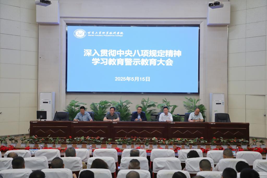 为深入贯彻中央八项规定及其实施细则精神,持续深化作风建设,进一步增强党员干部廉洁意识、纪律规矩意识,5月15日下午,学校党委召开深入贯彻中央八项规定精神学习教育警示教育大会。在家党委班子成员和全体科级以上干部参加,会议由党委副书记文云主持。会上,参会人员观看了警示教育片《功臣之覆》。党委委员、纪委书记、监察专员贾昌麟领学了中央八项规定及其实施细则精神典型案例等,深入剖析了违反中央八项规定精神突出问...